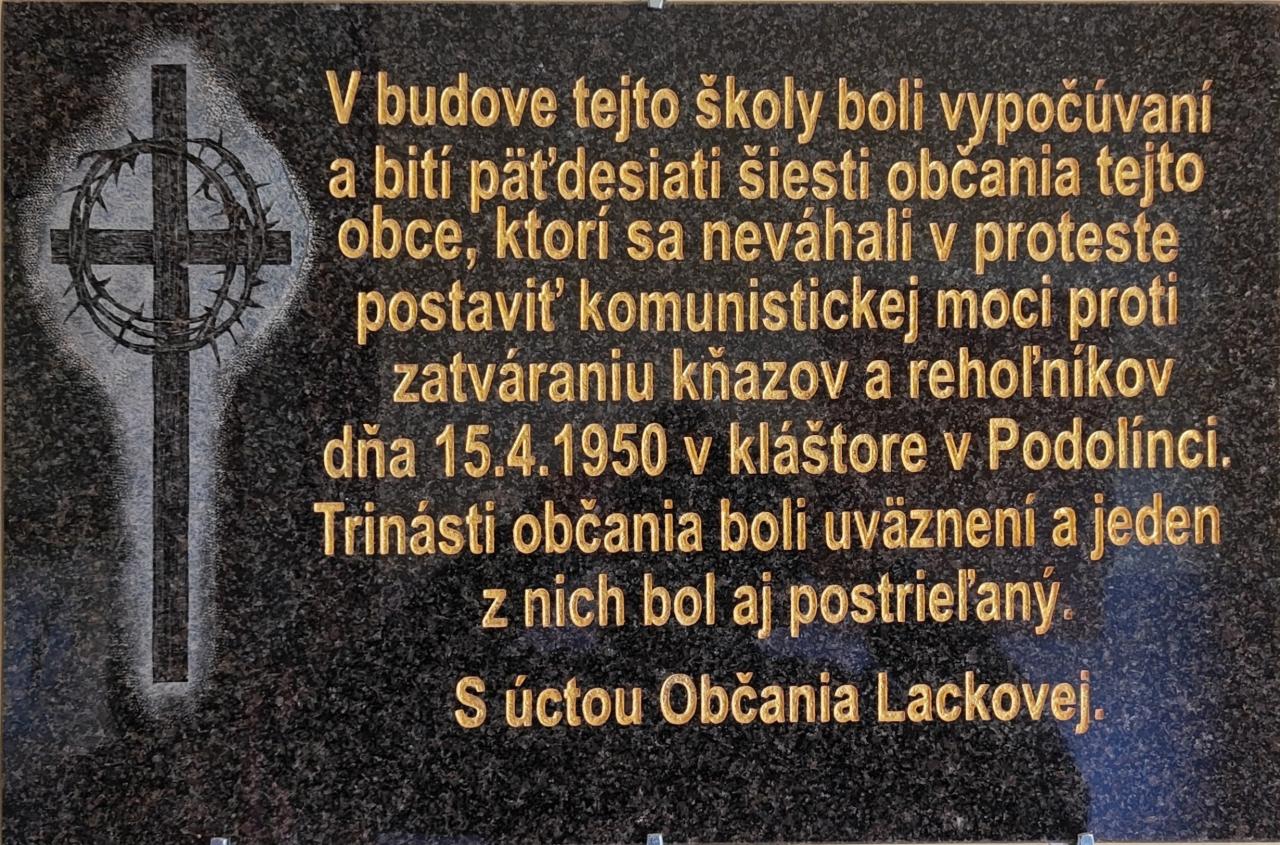 75. Výročie násilnej likvidácie kláštorov a odvážne vzopätie občanov Lackovej voči násilnostiam komunistického režimu